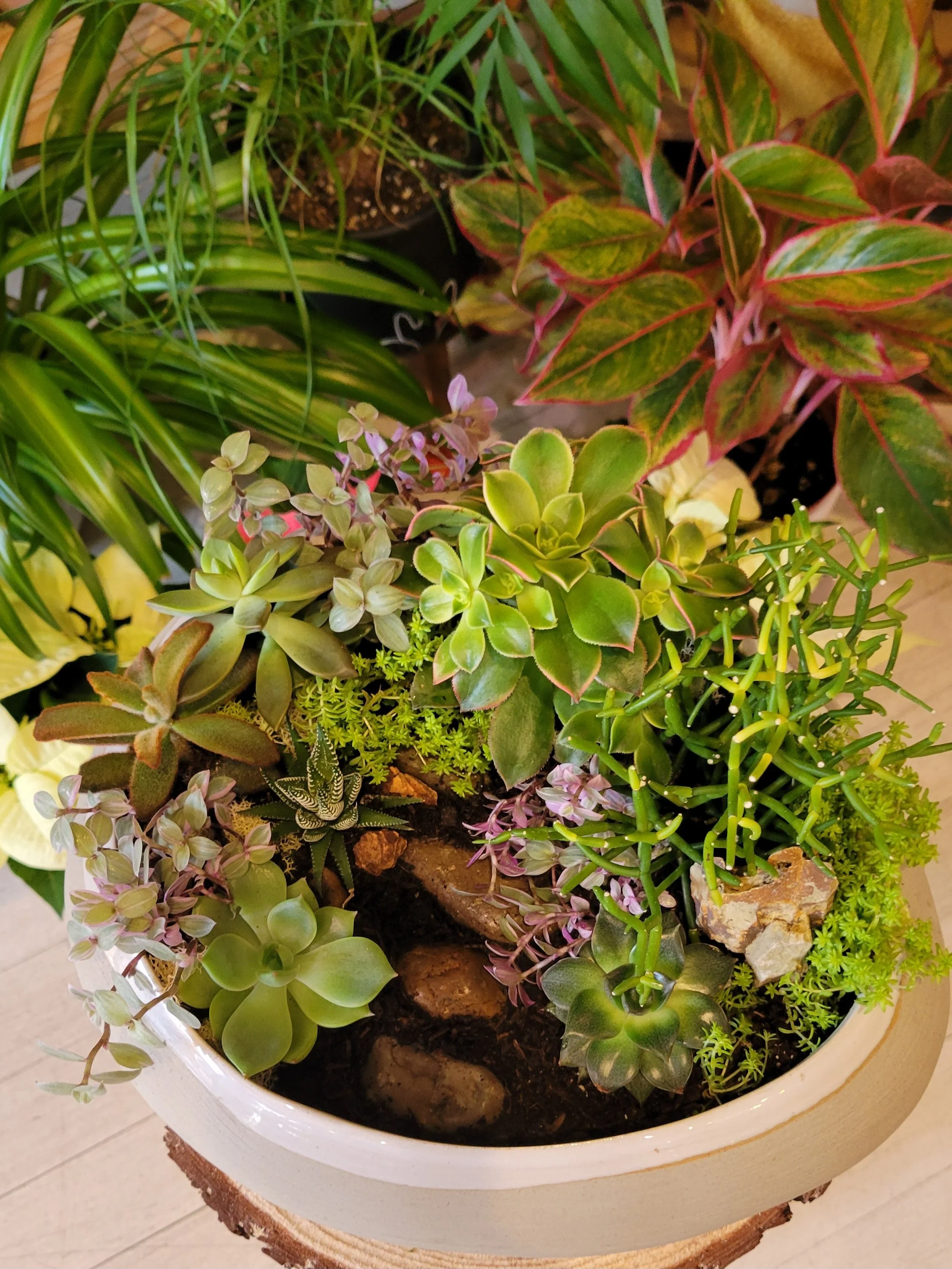 Houseplant and succulent arrangements for centerpieces, office displays, gifts, and more. Tell us what you’re looking for and our in-house designer will find the perfect plants to work within your budget and care conditions.
